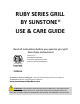 RUBY SERIES GRILL BY SUNSTONE® USE & CARE GUIDE Read all instructions before you operate your grill. Save these instructions! Conforms to ANSI STD Z21.58b-2012 Certified to CSA STD 1.6b-2012 Outdoor Cooking Gas Appliance 3174816 To installer or person assembling grill: Leave this manual with grill for future reference. To consumer: Keep this manual for future reference. www.sunstonemetalproducts.com ATTENTION: THE RUBY GRILL MUST BE INSTALLED ACCORDING TO THE INSTALLATION GUIDE SHOWN ON PAGES 9 THRU 14.