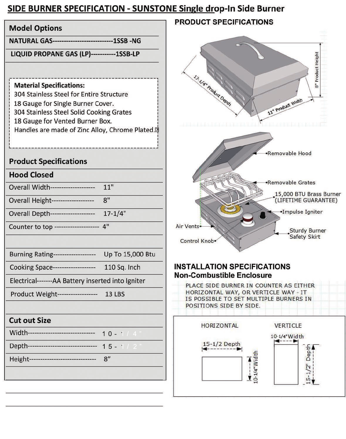Side Burner Spec Sheet