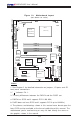 Chapter 1: Introduction P8SC8/P8SCi Quick Reference Jumpers JBT1 JPA1 (*P8SC8) JPF JPL1/JPL2 JPUSB1 JPWAKE1 JWD Description CMOS Clear SCSI CTRL Enable Power Force-On LAN1/LAN2 Enable USB Wake Up (USB1/2) KB/Mouse Wake-Up Watch Dog Default Setting See Section 2-7 Pins 1-2 (Enabled) Open (Normal) Pins 1-2 (Enabled) Pins 2-3 (Disabled) Pins 2-3 (Disabled) Pins 1-2 (Reset) Connectors ATX Power 4-Pin Power COM1, COM2 Fans 1-5 DIMM#1A,#2A,#1B,#2B Floppy Connector IDE IPMI J9 JL1 JLED JSLED JWOR Keyboard/Mous