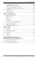 Table of Contents Table of Contents Chapter 1 Introduction 1-1 Overview ......................................................................................................... 1-1 Checklist .......................................................................................................... 1-1 1-2 Contacting Supermicro .................................................................................... 1-2 1-3 Serverboard Features ...............................................................