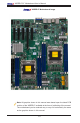 X9DRD-iF/LF Motherboard User’s Manual JUIDB UID (Unit Identification) Switch LAN1/LAN2 G-bit Ethernet Ports 1/2 (IPMI) LAN IPMI_Dedicated LAN SP1 Onboard Buzzer (Internal Speaker) (I-)SATA 0~5, SCU0~3 (I-)SATA 0~1 (X9DRD-LF) Onboard Serial_Link Connections (SATA Connections 0~5, SCU Connections 0~3) (CPU1) Slot3, Slot4, Slot5, (CPU2) Slot7 (X9DRD-iF) PCI-Express 3.0 x8 Slots (See Note Below) (CPU2) Slot6 (X9DRD-iF) PCI-Express 3.