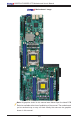 Chapter 1: Overview Motherboard Layout USB/0/1 LE4 SW1 S/IO JPB1 JVGA1 JWD1 JLAN2 JLAN1 IPMI LAN PHY DM1 LAN CTRL DM2 JI2C2 JI2C1 JRK1 P1-DIMMD S-SATA0 S-SATA1 S-SATA2 S-SATA3 JPCIE1 I-SATA0 I-SATA1 I-SATA2 I-SATA3 I-SATA4 I-SATA5 P1-DIMMC JWP1 JOH1JSPK1 JSD1 PCH Battery JPW10 JPBR1 JPME1 BIOS JBT1 JTPM1 J29 J30 JPCIE5 CPU1 Slot1 PCI-E 3.0 x8 (in x16) JPCIE6 PCH Slot6 PCI-E 2.0 x4 (in x8) JPME2 BMC CTRL JPL1 JCOM1 JPG1 CPU1 CPU1Slot1PCI-E 3.