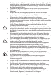 • • • • • • Stellen Sie das Gerät nicht in der Nähe von Wärmequellen, in der Nähe von entzündlichen oder brennbaren Materialien oder an Orten auf, an denen Nässe oder eine hohe Feuchtigkeit auftritt. Für einen ordnungsgemäßen Betrieb muss das Gerät ausreichend belüftet werden. Gewähren Sie nach oben einen Abstand von 20 cm, an der Rückseite von 10 cm, sowie an der linken und rechten Seite jeweils 5 cm. Die Lüftungsschlitze (2) des Gerätes dürfen nicht abgedeckt oder versperrt werden.