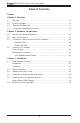 AOC-STG-i2T Add-on Card User's Guide Table of Contents Preface Chapter 1 Overview 1-1 Overview.......................................................................................................... 1-1 1-2 Product Highlights............................................................................................ 1-1 1-3 Technical Specifications................................................................................... 1-1 1-4 Compliance/Operating Environment............................