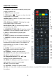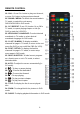 REMOTE CONTROL 1. POWER: To set the unit in standby mode; press it again to switch it on. 2. MUTE: To mute the sound. 3. RED button / : To open or close the disc compartment in DVD mode. GREEN button / GOTO: To play from a certain point in DVD mode. YELLOW button / ANGLE: To display the angle and change angle in DVD mode. BLUE button / A-B: To repeat playing between two specific points (A-B). 4. NUMBER BUTTONS (0-9): To input the number information, such as channel number and so on. 5.