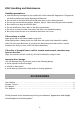MAINTENANCE ● Be sure to press POWER button to set the player to the standby mode and disconnect the AC adaptor before maintaining the player. ● Wipe the player with a dry, soft cloth. ● If the surface is extremely dirty, wipe clean with a cloth which has been dipped in a weak soap-water solution and wrung out thoroughly, and then wipe again with a dry cloth. ● Never use alcohol, benzene, thinner, cleaning fluid or other chemicals. And do not use compressed air to remove dust.