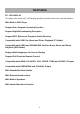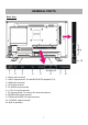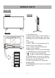 GENERAL PARTS MAIN UNIT Front View Side View Back View 1. LED display screen 2. Remote control sensor / Power indicator - In standby mode the indicator light is red; when switching on the unit the indicator light is blue color. 3. Stand holder 4. VOL +/- button- To increase/decrease the volume level or move left/right. 5. CH +/- button- To select next/previous channel or move up/down. 6. MENU button- To enter menu setting page. 7. SOURCE button- To select the input source.