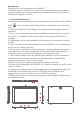 1. Power button: Press and hold for 5-7 seconds to start up or close the touch screen panel. You can also press power once for computer to enter in sleep mode press power button one time again and it will wake from the dormancy (Sleep mode) mode. 2. Sound-/sound+: Lower/raise volume Loudspeaker: The built-in loudspeaker enables you to hear the sound without having to link additional device 3. Front CCD camera: take photos, and record pictures CCD camerakey: indicator: Thebutton CCD camera willscreen.