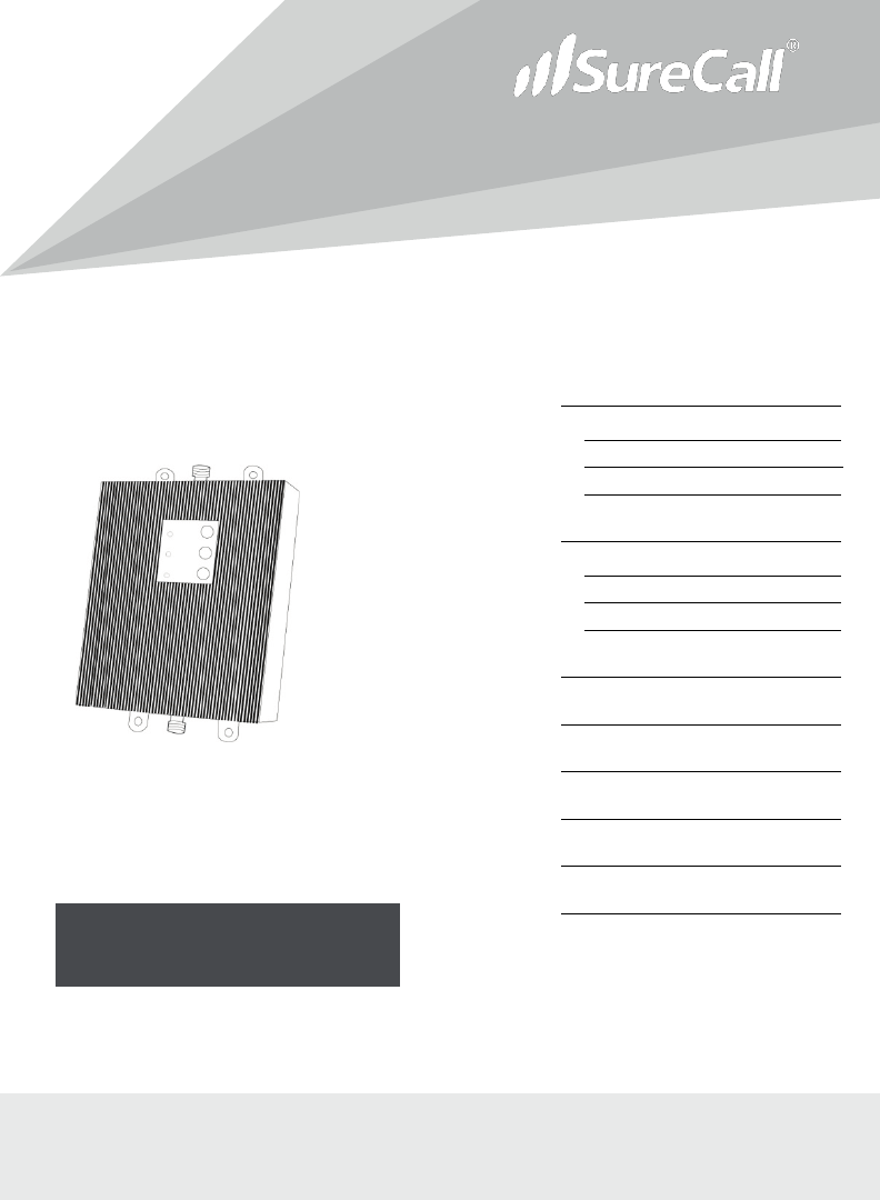 Tri-Band Wireless Adjustable Signal Booster INTRODUCTION PRINCIPLES OF OPERATION 2 2 SURECALL TRIFLEX-2GO-V PACKAGES3 TRIFLEX-2GO-V BOOSTER HARDWARE5 INSTALLATION PACKAGE CONTENTS 6 6 SITE SELECTION 6 INSTALLATION INSTRUCTIONS 7 TROUBLESHOOTING 11 FREQUENTLY ASKED QUESTIONS 13 3G – 4G Multi-use Signal Booster Kit TRIFLEX-2GO-V for Verizon 2G thru 4G OBTAINING TECHNICAL SUPPORT 13 WARRANTY 14 SPECIFICATIONS 16 SAFETY INFORMATION 17 (TRIFLEX-2GO-V) User Guide TRIFLEX-2GO-V MULTIUSE KITS M