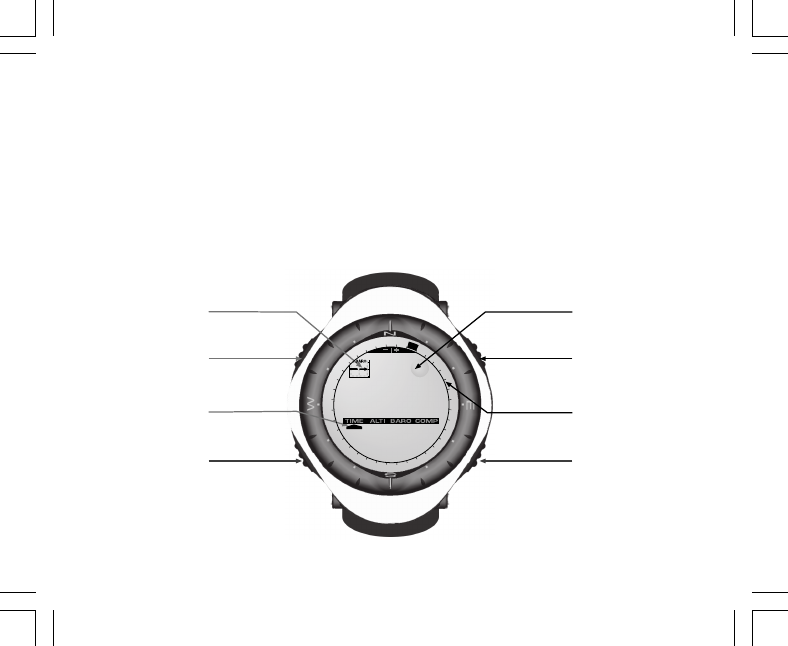 • A Mode Indictor Bar displays the main modes (functions) of the Wristop Computer (a triangle arrow located