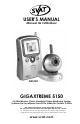 USER'S MANUAL Manuel de l'utilisateur GX5150 GIGAXTREME 5150 2.4 GHz Wireless Colour Handheld Video Monitoring System Système De Surveillance Sans fil De Vidéo De Couleur 2.4GHz This product transmits its signal using public air waves. The signal can be intercepted by a thrid party without your consent. Ce produit transmet son signal utilisant des vagues d'air publiques. Le signal peut être intercepté sans votre consentement par un tiers. www.svat.