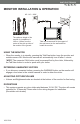 SVAT ELECTRONICS Now You Can See MONITOR INSTALLATION & OPERATION 145cm ~ 160cm AC: 110 ~ 240V The optimum height of the monitor for installation is 145cm ~160cm from the center of the pick-up tube of the monitor to the ground. Take two screws and fix the support of the wall-mount on the wall and then install the monitor. USING THE MONITOR • When the monitor is in standby, pressing the Talk/View button turns the monitor and outside camera ON.