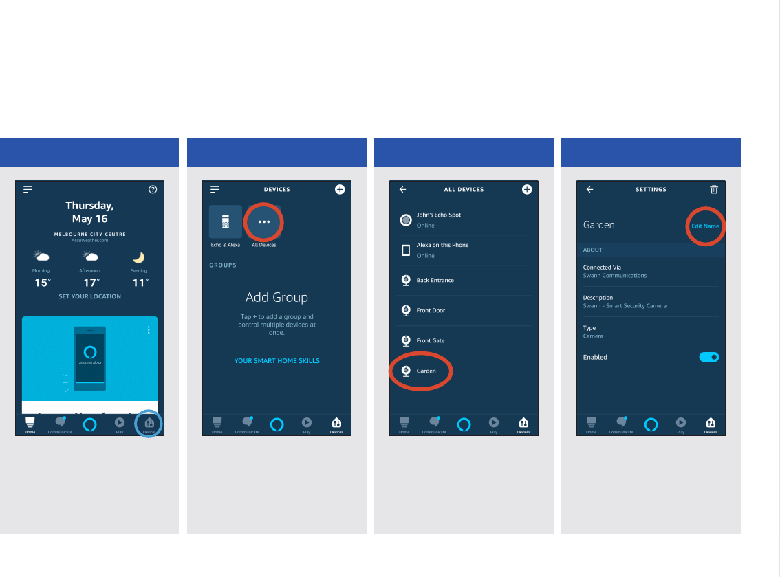 camera through the Amazon Alexa app. Note that renaming the camera on Alexa does not change the original name of the camera in