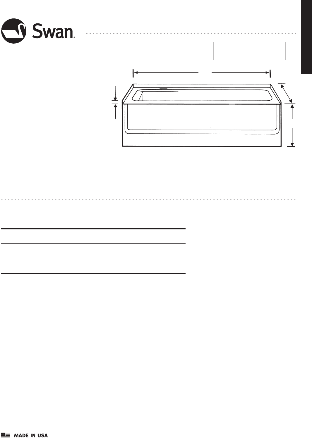 Bathing well dimensions: 22-1/2" x 50" x 13" (572 mm x 1270 mm x 330 mm)