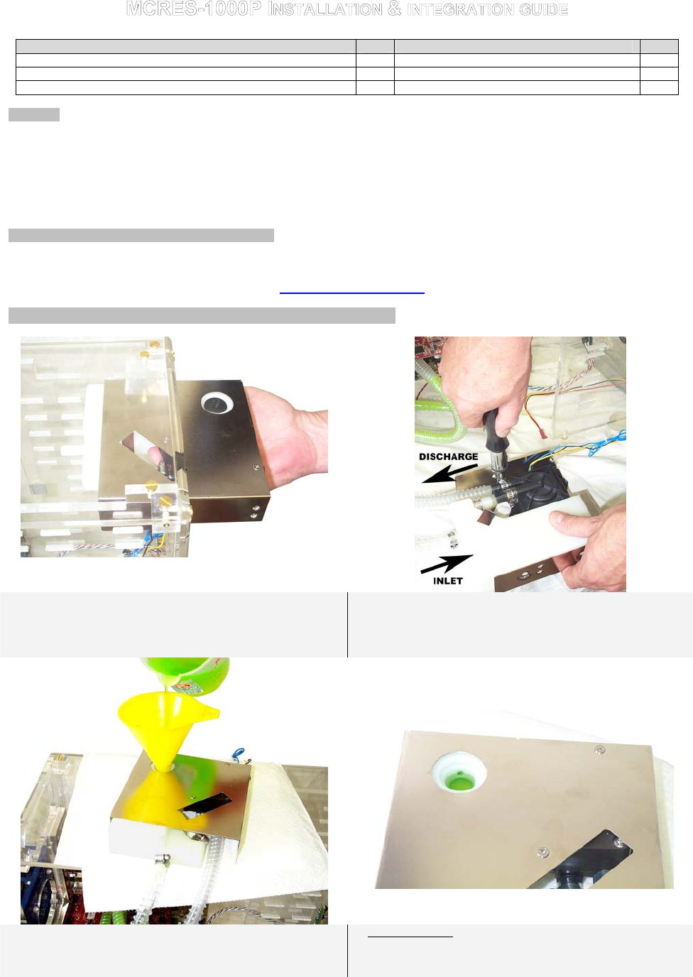 - In the context of a first time liquid cooling circuit installation, the MCRES-1000 should be the last component to be installed.