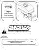 swisherinc.com OWNER’S MANUAL 20110 Commercial Pro Truck Spreader WHEN ORDERING PARTS, PLEASE HAVE THE FOLLOWING INFORMATION AVAILABLE: * PRODUCT – ________________ * SERIAL NUMBER - _______________ * MODEL NUMBER - _______________ TYPE - _______________ * PART NUMBER WITH PAINT CODE * PART DESCRIPTION TELEPHONE - 1-800-222-8183 FAX - 1-660-747-8650 swisherinc.