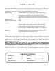 LIMITED WARRANTY The manufacturer’s warranty to the original consumer purchaser is: This product is free from defects in materials and workmanship for the period's shown below beginning from the date of purchase by the original consumer purchaser. We will repair or replace, at our discretion, parts found to be defective due to materials or workmanship.