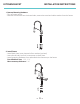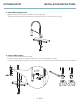 KITCHEN FAUCET INSTALLATION INSTRUCTIONS 3. Secure Mounting Hardware • Adjust direction of faucet so handle is on the right side. • Tighten mounting nut and mounting screws with Phillips screwdriver until snug. 4. Connect Water Supply • Connect spray hose and spray head. • Connect water supply to hot and cold hose. Turn on and check for leaks. • Remove spray head from hose, hold tip of hose, turn on the faucet for 60 seconds to flush any debris.