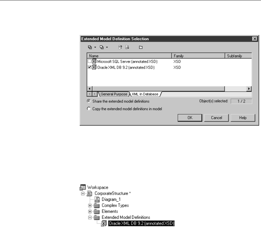 Oracle XML DB 9.2 appears in the List of Extended Model Definitions.