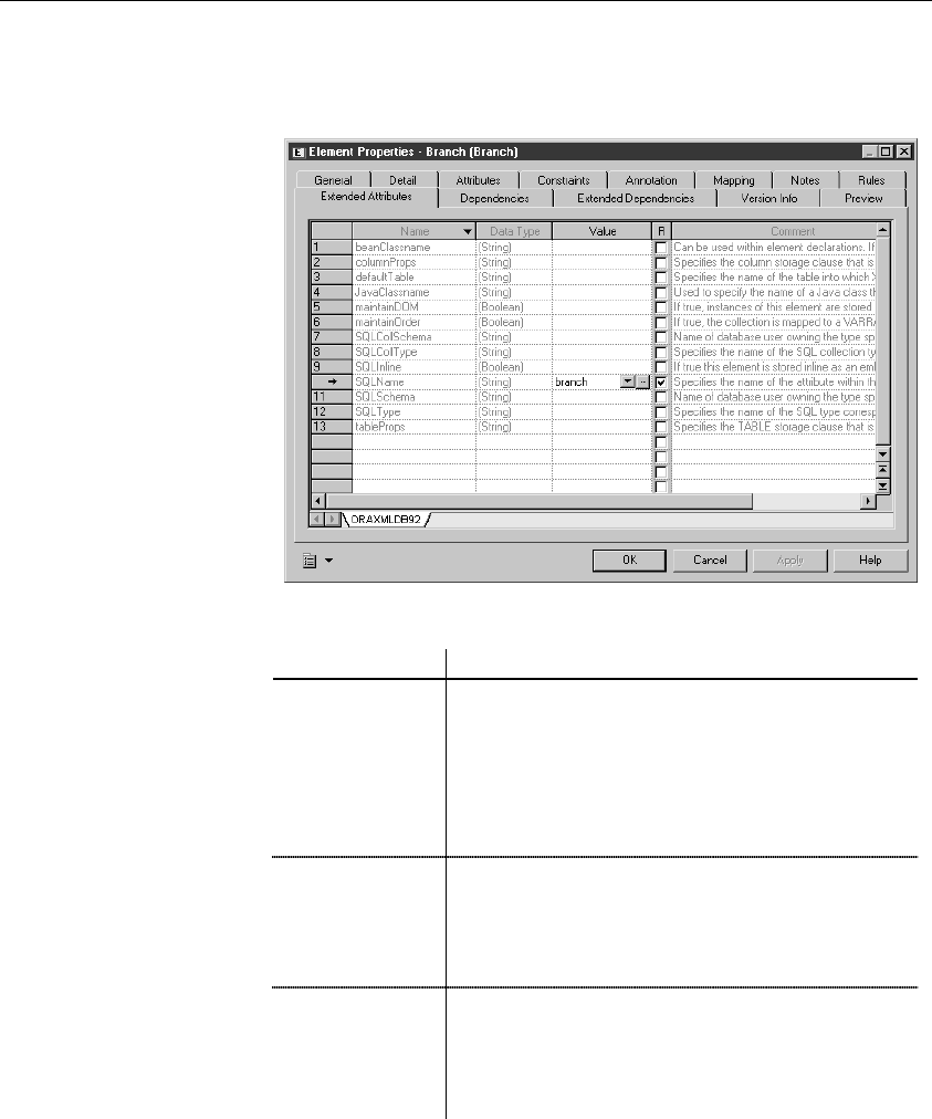 7 In the Extended Attributes page, type the name of a table or a column in