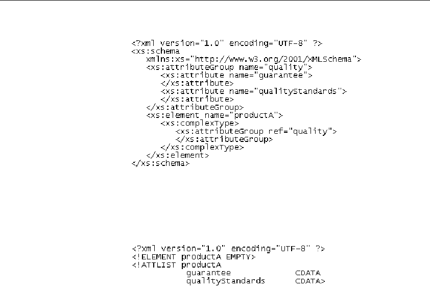 ♦ Referencing attribute groups are used within an element, a complex type