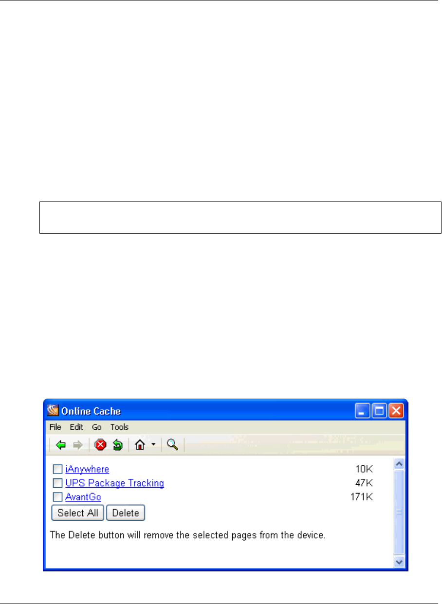 online cache” on page 78. You can remove individual pages from the cache to free up space.