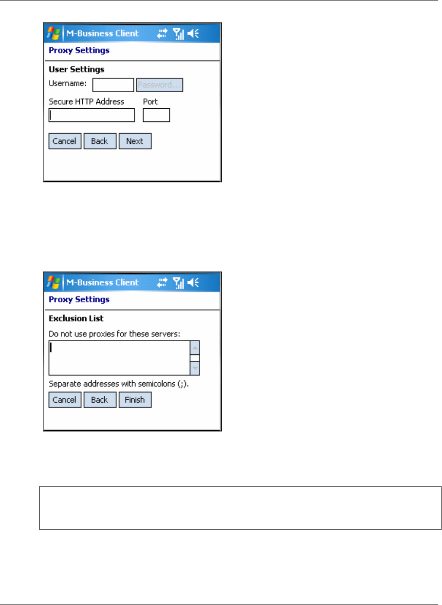 Exceptions are the host names of servers that M-Business Connect should access without going through