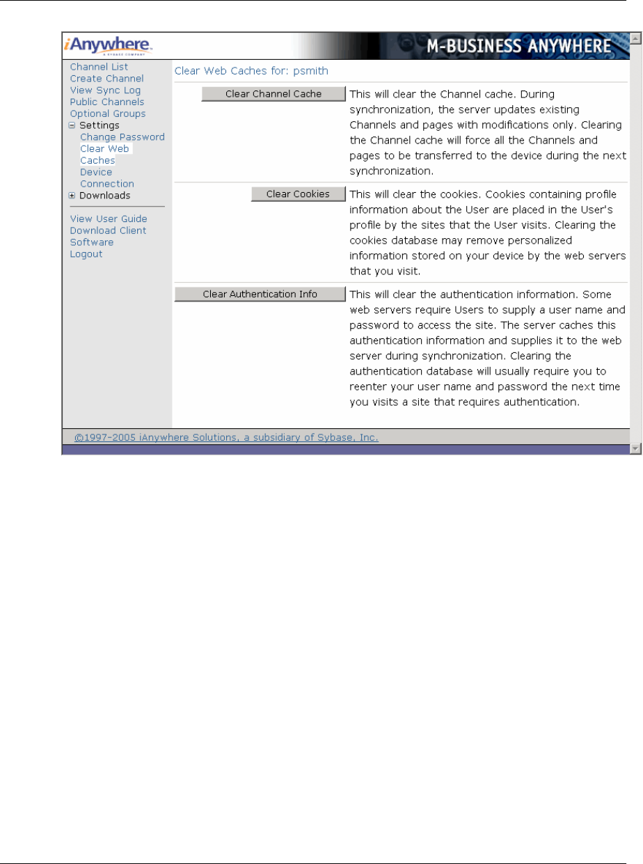 3. Click Clear Channel Cache, Clear Cookies, or Clear Authentication Info.