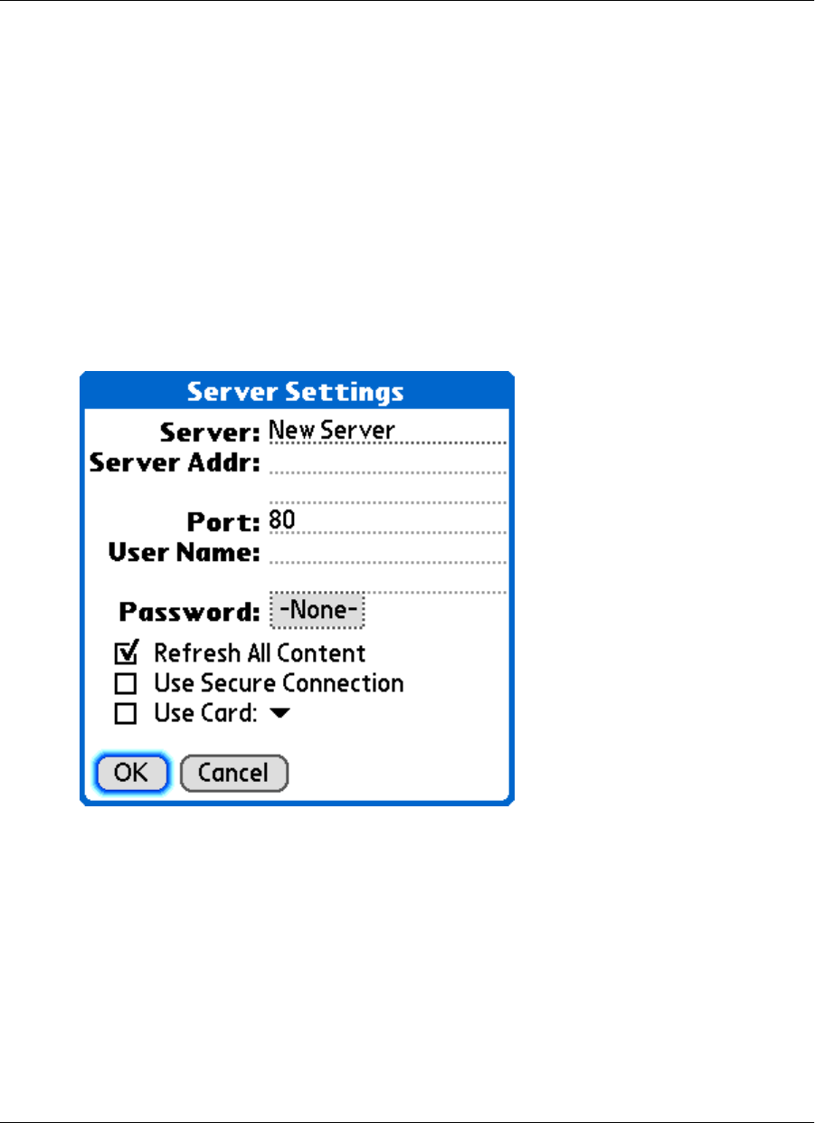- Configuring a server connection on Palm OS