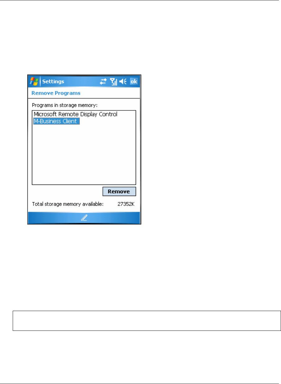 ♦ To uninstall M-Business Client from your Windows Mobile 5 or 6 or Microsoft Smartphone