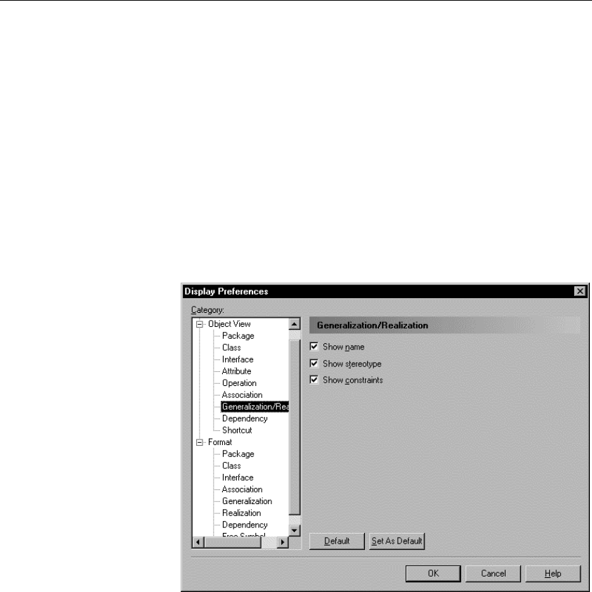 You modify the display preferences for a realization in the Display