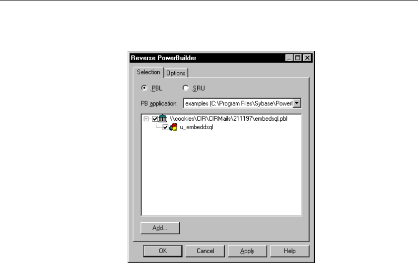 You return to the Reverse PowerBuilder dialog box. It displays the files