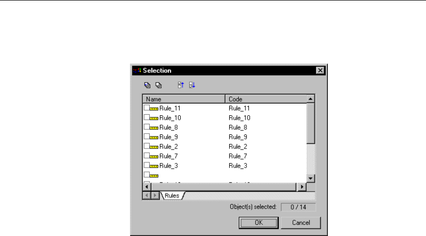 The Selection window appears. It contains a list of all the business rules