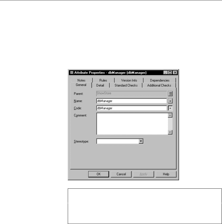 The attribute property sheet displays the definition of the attribute, which you