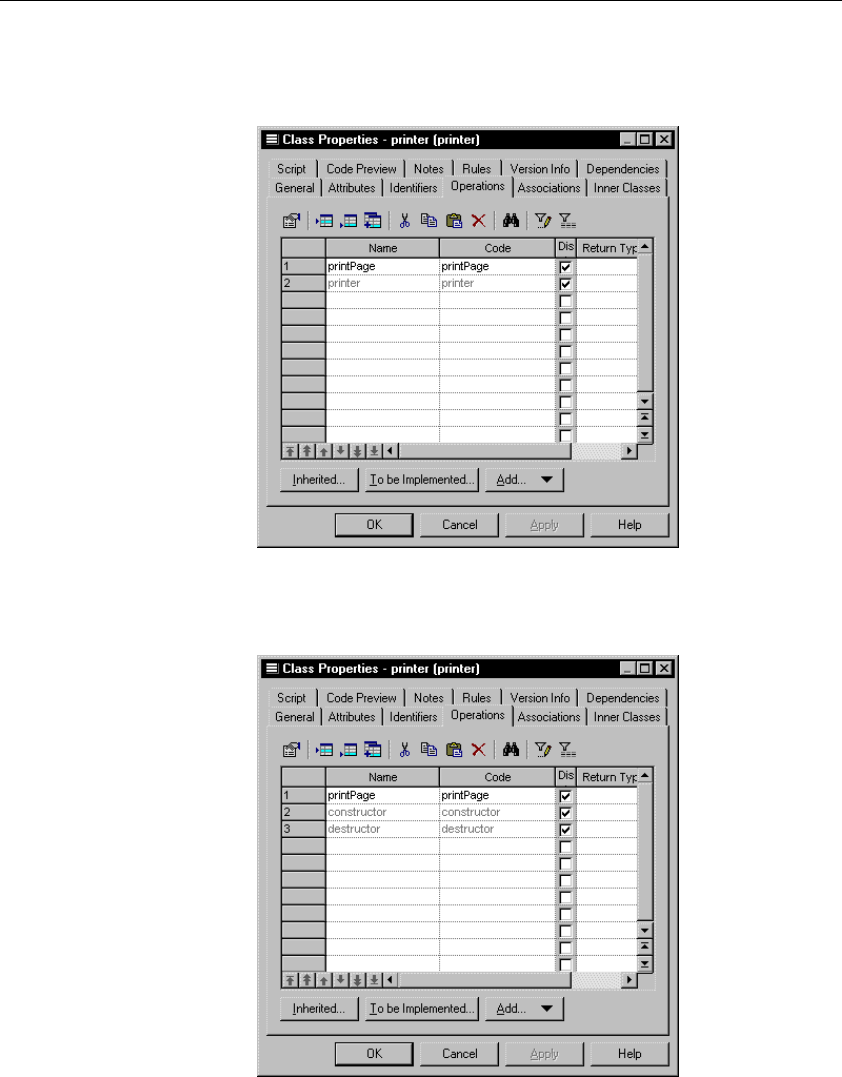 operations for the class. They have the names constructor and destructor: