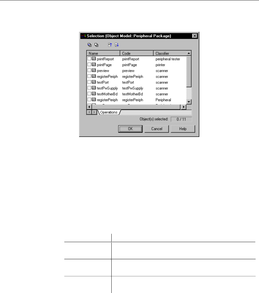 A selection box appears. It lists operations attached to all other classes in