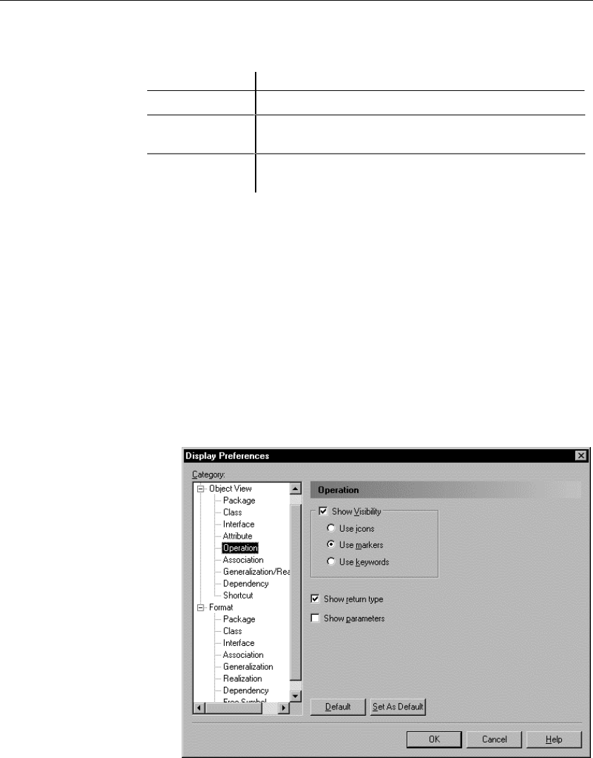 You modify the display preferences for an operation in the Display