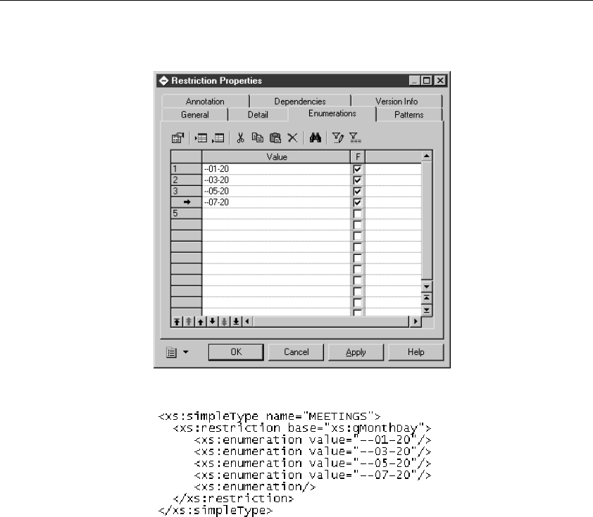 The Patterns page of a simple type restriction property sheet allows you to