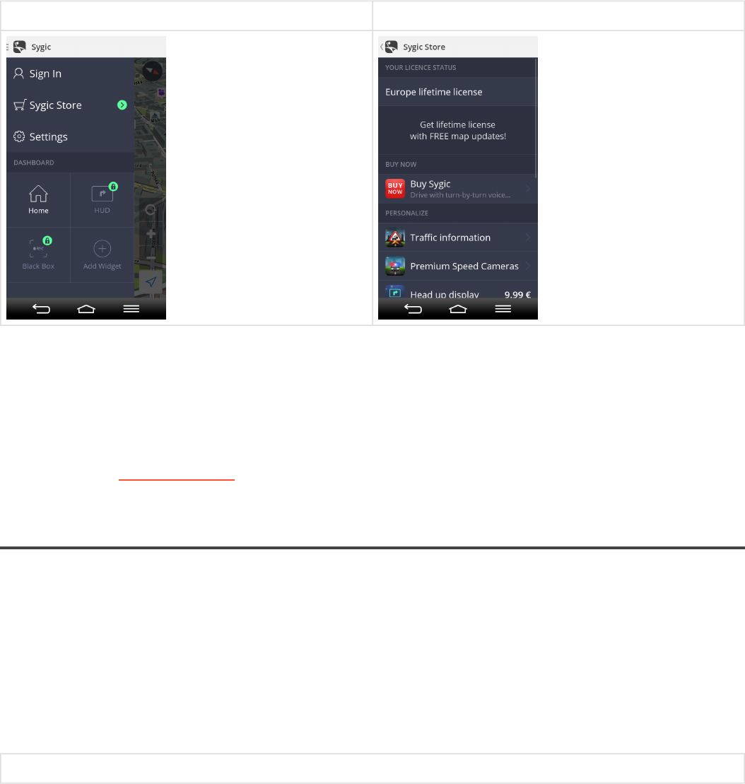 to Sygic account(Sygic ID) and additional features through Sygic Store, such as Traffic, Head Up Display,