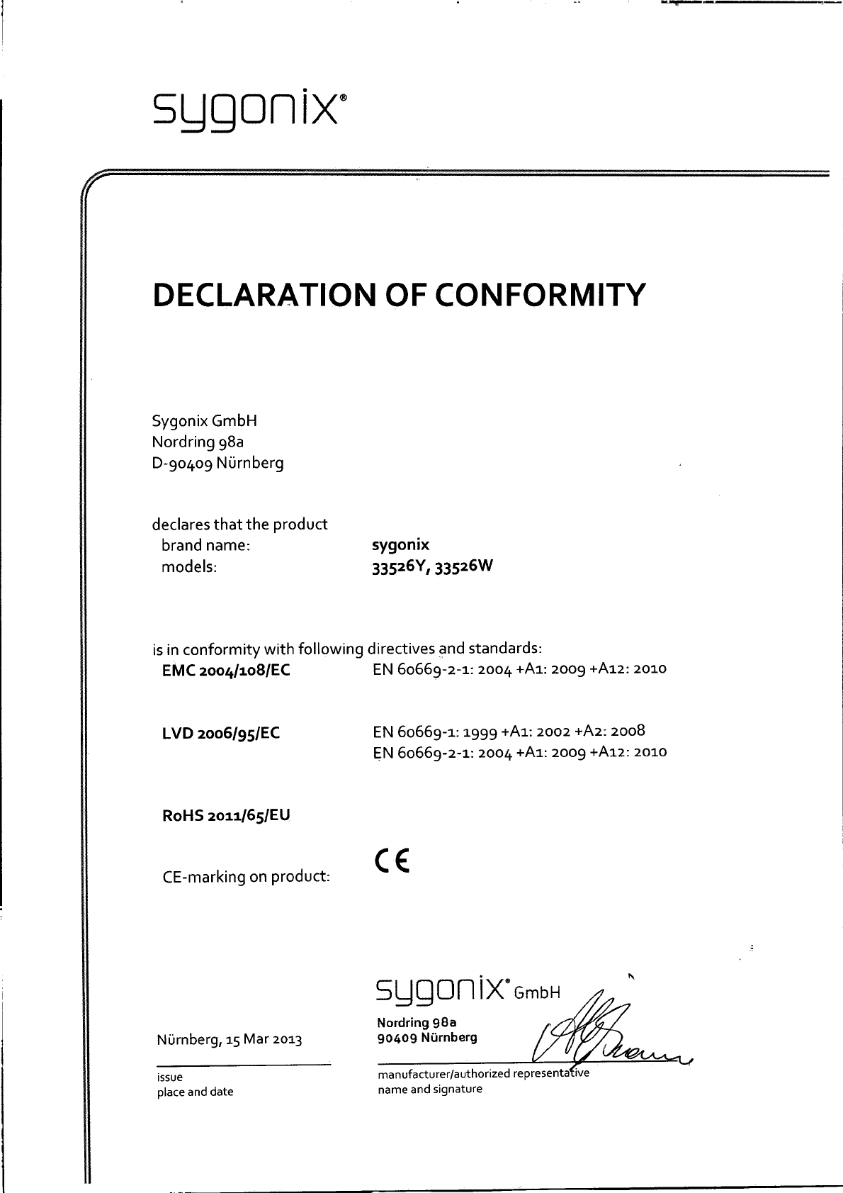 Declaration of conformity