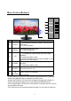 Boutons de Contrôle du Menu 1 2 3 4 5 6 No. 1 2 3 4 5 6 Bouton Fonction 1. Ajustez automatiquement l’écran, si ce n’est pas en AUTO menu OSD. 2. Pour quitter un sous-menu. MENU 1. Affiche le menu OSD principal. 2. Pour entrer un sous-menu. 1. Pour naviguer en haut/droite dans la sélection de HAUT l’option de menu. 2. Pour augmenter la valeur d’une option. 3. Sélectionnez la taille de l’image de l’écran (LARGE ou 4 :3) si ce n’est pas en menu OSD. BAS 1.