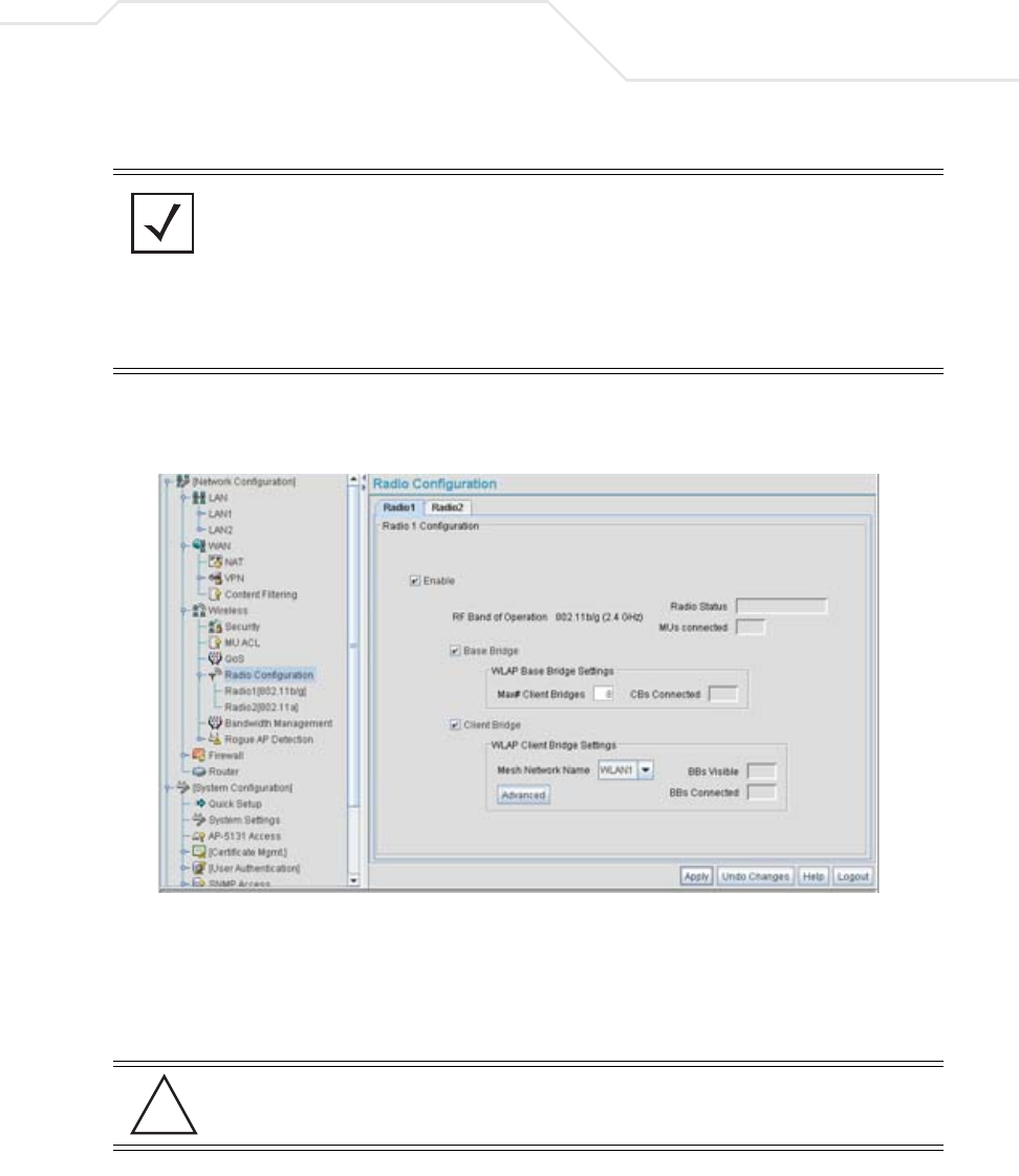 or 802.11b/g radio. After the settings are applied within this Radio Configuration screen, the
