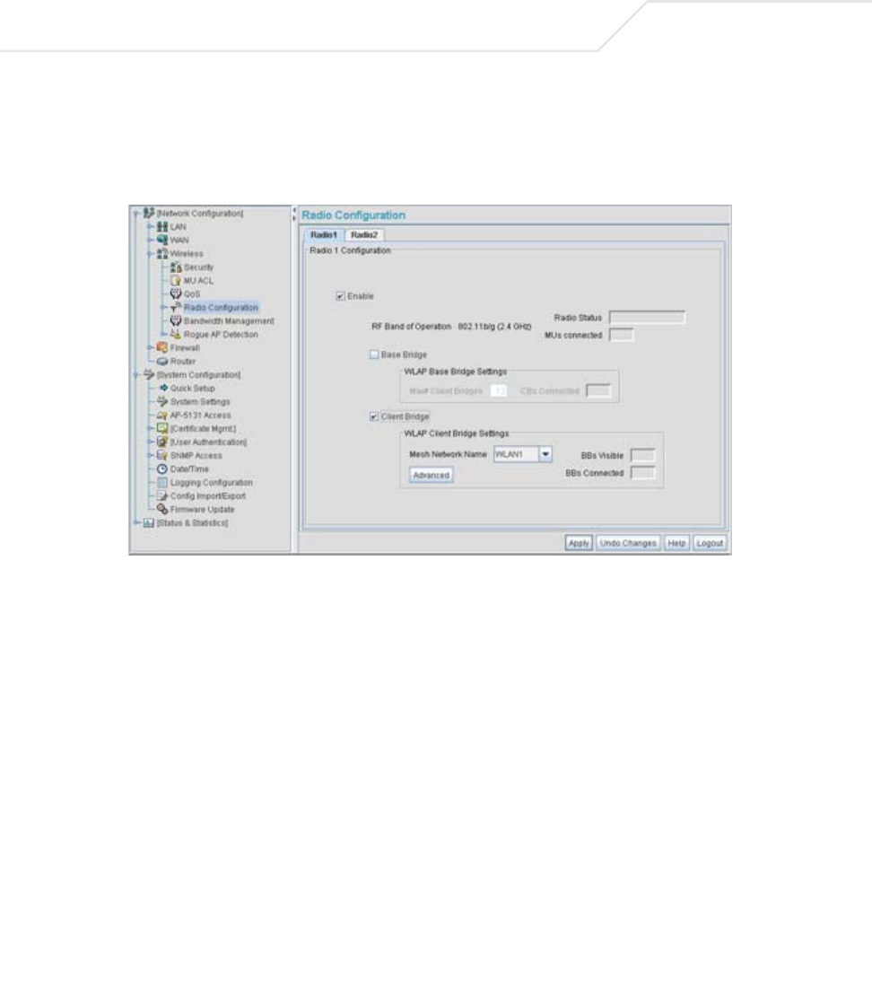The Radio Configuration screen displays.