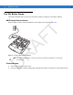 Accessories 6-9 R AF T Battery Battery Charging LEDs (4) Figure 6-9 Four Slot Battery Charger Battery Charging Indicators D The charger has an amber LED for each battery charging well. See Table 6-3 for charging status indications. The 2200 mAh battery fully charges in less than five hours and the 3300 mAh battery fully charges in less than seven hours. Charging Temperature Charge batteries in temperatures from 0°C to 40°C (32°F to 104°F). Charging is intelligently controlled by the MC55.