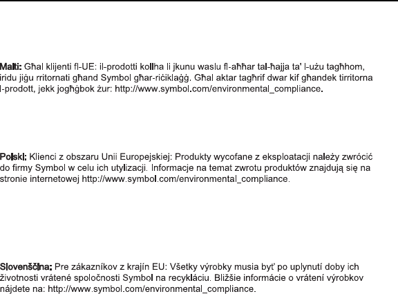 tudnivalókért látogasson el a http://www.symbol.com/environmental_compliance weboldalra.