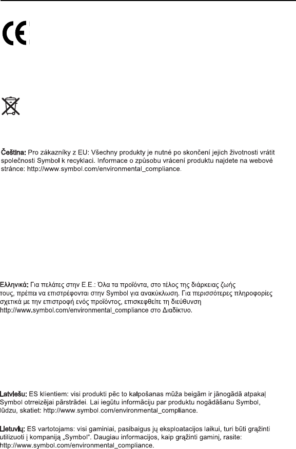 Dansk: Til kunder i EU: Alle produkter skal returneres til Symbol til recirkulering, når de er