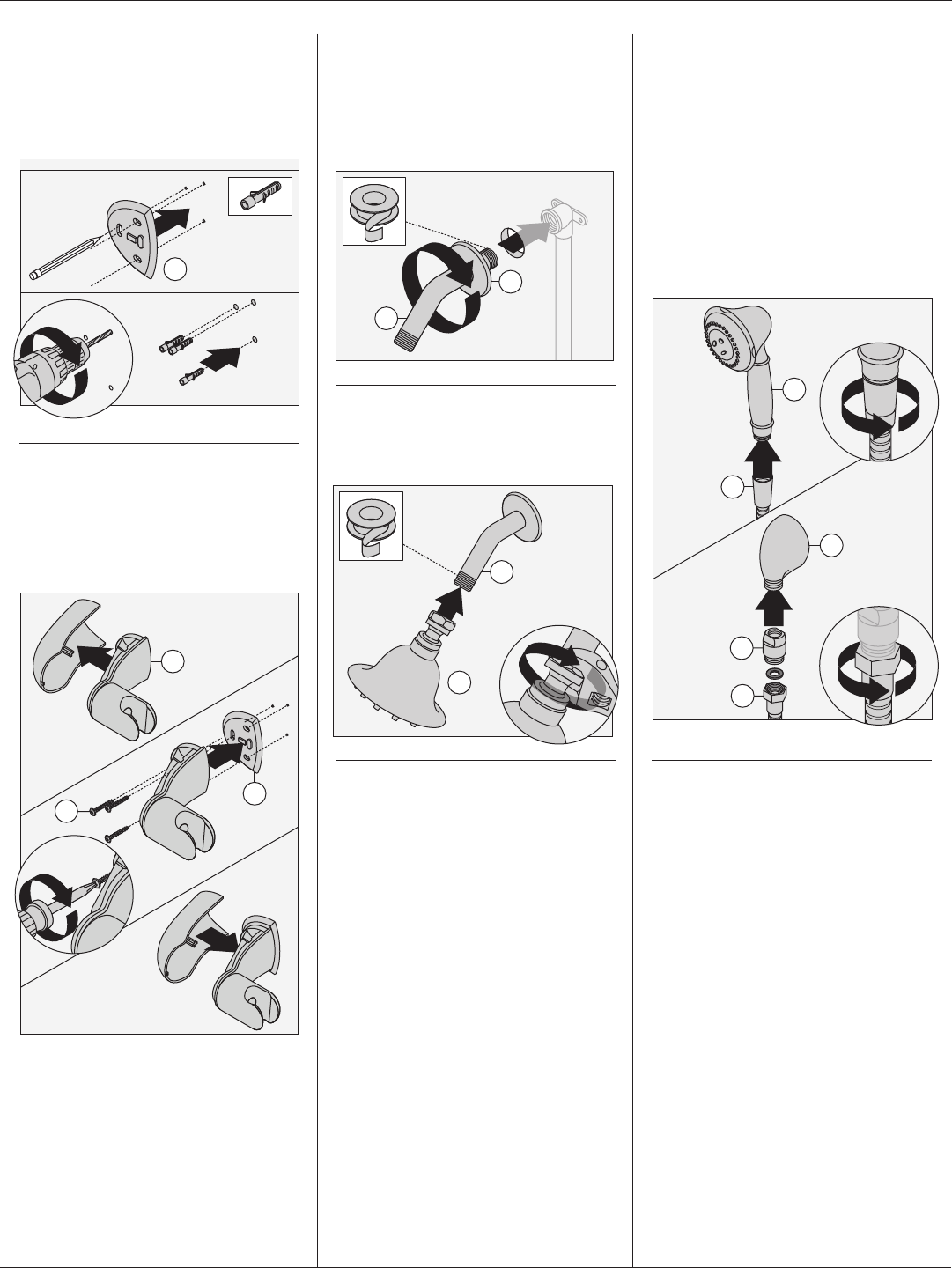 10) Attach shower arm (D) and