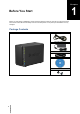 Chapter Chapter 1: 1 Before You Start Before you start setting up DiskStation, please check the package contents to verify that you have received the items below. Please also read the safety instructions carefully before use to prevent your DiskStation from any damages. Package Contents Main unit x 1 AC power cord x 1 AC power adapter x 1 RJ-45 LAN cable x 1 Installation disc x 1 Screws for 2.