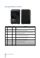 Appendix B LED Indication Table AppendixB: LED Indication Color Status Description Static Volume normal Slow on/off cycle HDD Hibernation (All the other LED indicators will be off) Green Available volume space < 1GB STATUS Static Available volume space < 1 % Orange Volume degraded or crashed Blinking No volume LAN DISK 1~2 Green Green Orange Copy Power Green Blue Static Network link Blinking Network is active Off Network is down Static Disk is ready and idle Blinking Disk