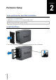 6 The disks’ positions are numbered as shown below. 7 Replace the hard drive bay cover to finish the installation. Note: If you want to set up a RAID set, it is recommended that all installed hard disks are of the same size to make the best use of hard disk capacity. Start Up Your DiskStation 1 Use the LAN cable to connect DiskStation to your switch/router/hub. 2 Connect the AC adapter to the power port of DiskStation.